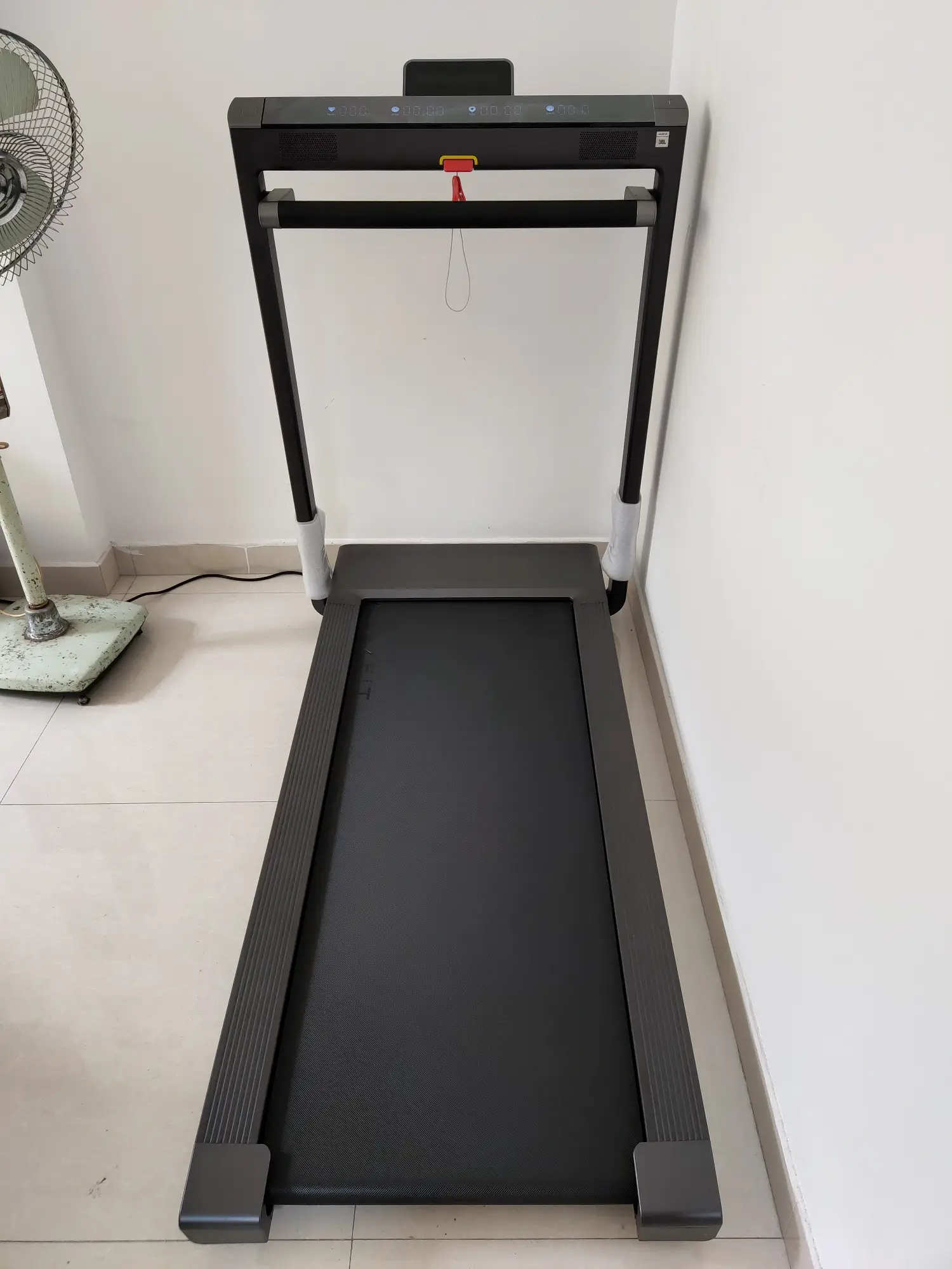 The pre-order delivery was late but finally, it was delivered after 1.5 months wait. The treadmill itself is simple and elegant in appearance and very good quality-wise when compared with the local options available within the same price bracket, the running belt is half-meter wide and comfortable for running and jogging, It is also worth mentioning that it comes with two built-in JBL speakers and the quality of the speakers is also good. Overall, it was a good purchase!