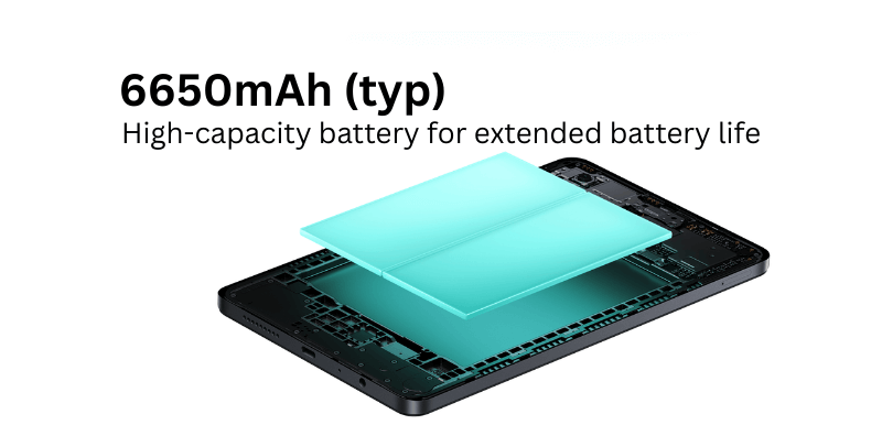 The Pad is powered by the MediaTek Helio G85 processor, a 12nm process, which is decent for general tasks and casual gaming. The octa-core CPU consists of: