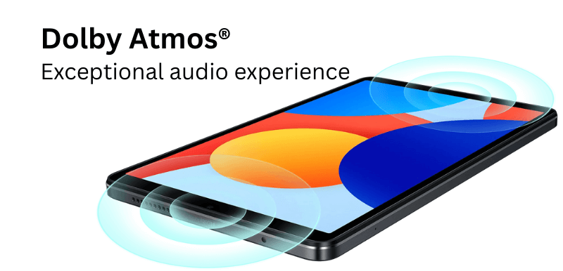 The Pad combines stereo sound with dual speakers with Dolby Atmos support, appropriate for films, music and games. On top of that, the tablet also features a 3.5mm headphone jack, so you can hook up cable headphones for some solo listening. It packs a single microphone as well to allow clear voice input during video calls, voice commands, online meetings.