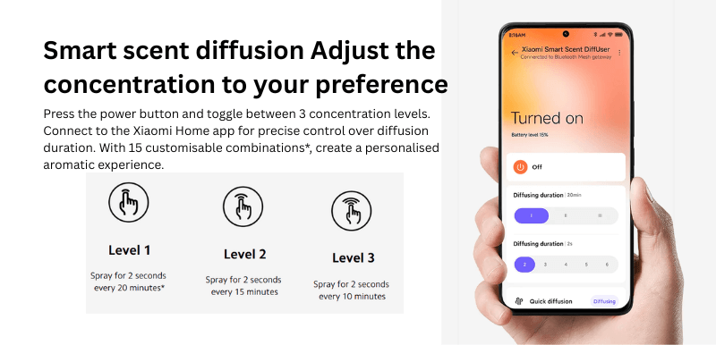 Unlike traditional plug-in or manual diffusers, the Xiaomi Smart Scent Diffuser offers: