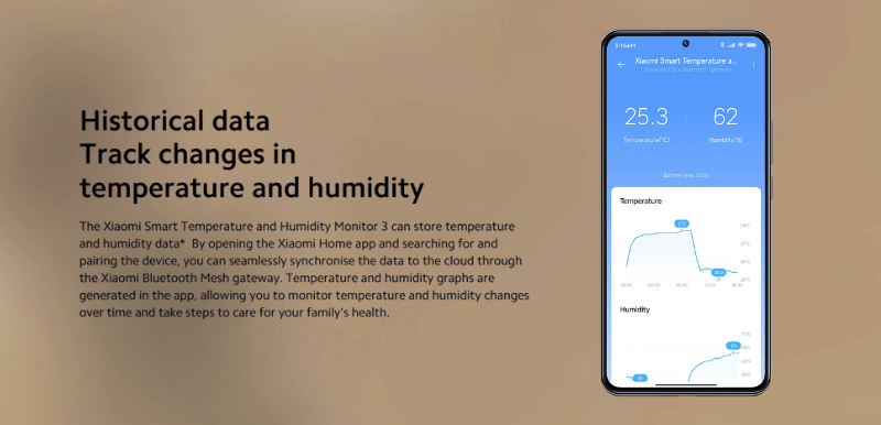Bluetooth connectivity is one of the main highlights of the Xiaomi Thermohygrometer Mini. By connecting it to the Mi Home app, you can:
