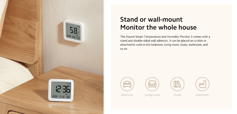 With the Xiaomi Thermohygrometer Mini, you always acquire an optimal indoor climate for the protection of your health and your belongings.