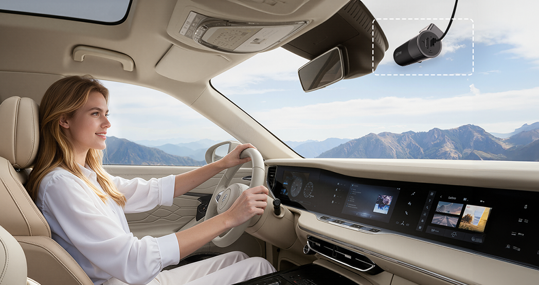 Pro 2K’s mini-sized body tucks away behind your rearview mirror — keeping your