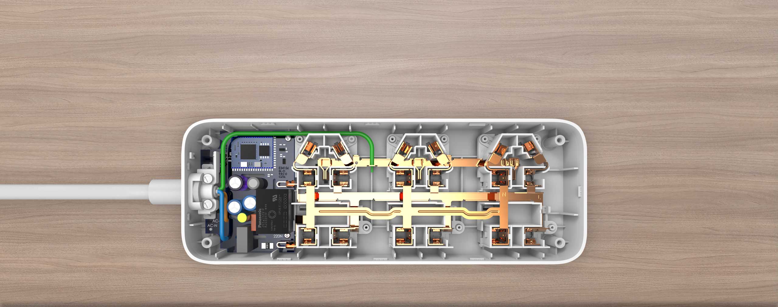 Mi Smart WiFi Power Strip adopts 2 new national standard five-sockets and three 3-positions, dual row design, which not only meets the needs of multiple devices for simultaneous use, but also maintains a compact and simple design.