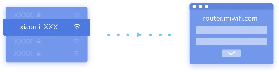 ① Search for and connect to the "xiaomi_XXXX" wireless network without a password.② Go to router.miwifi.com to enter the broadband account information and complete the set-up.