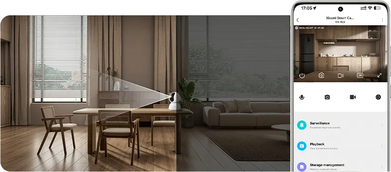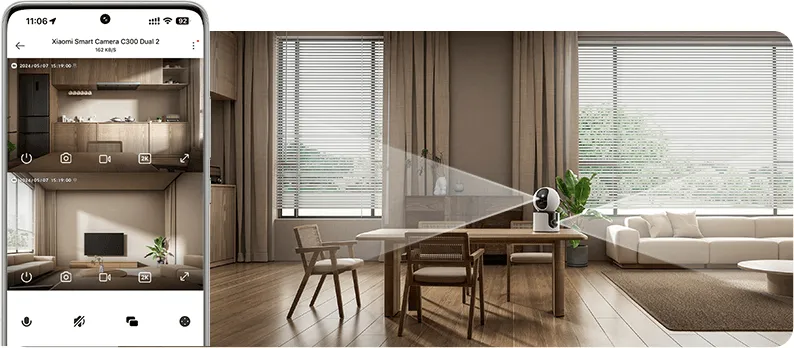 With two cameras, two directions can be protected simultaneously, delivering dual coverage at home that effectively reduces blind spots.